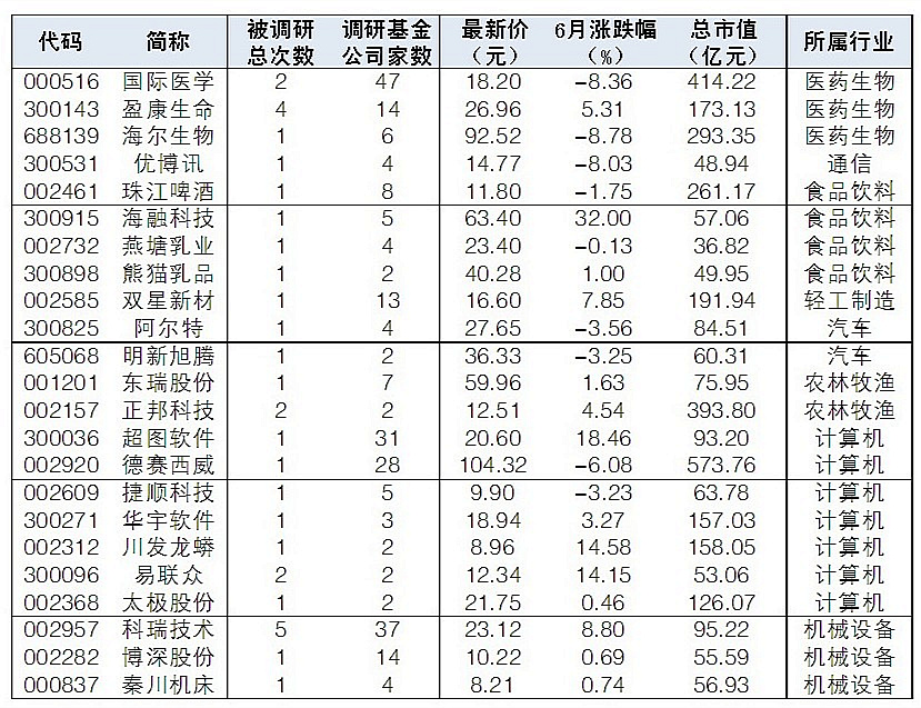 6月基金公司調(diào)研偏愛科技股