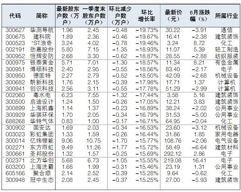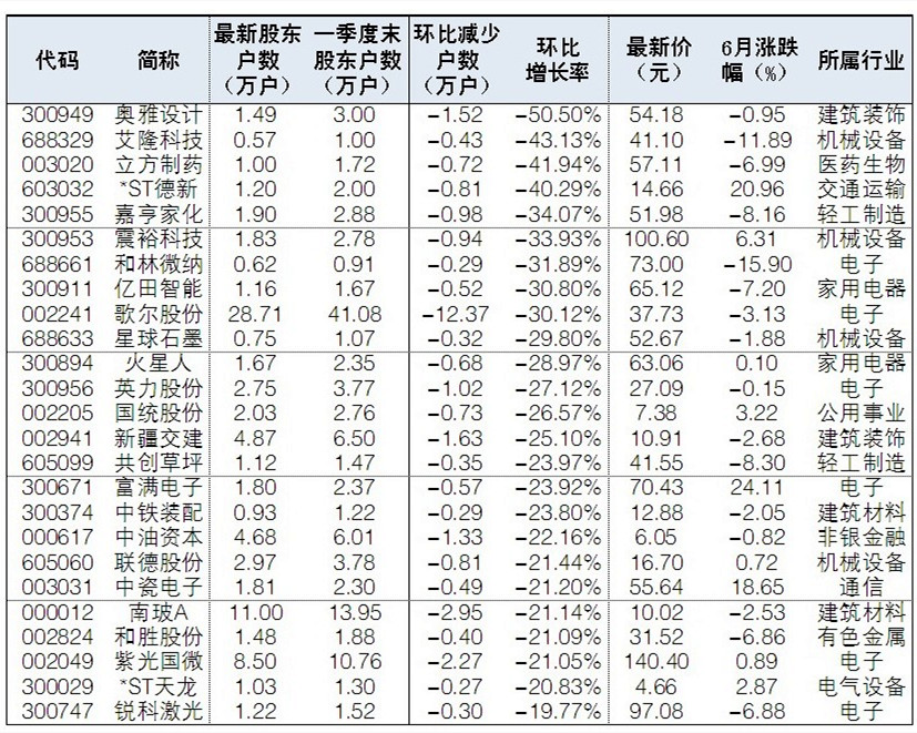 49股股東戶數環比減少超15%
