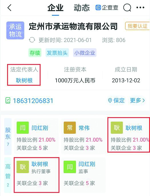 顯然,按照相關(guān)法規(guī)來看,定州睿智、定州承運這兩家供應(yīng)商之間也應(yīng)當(dāng)存在關(guān)聯(lián)關(guān)系。實際上,企查查還顯示,定州睿智2018年向當(dāng)?shù)厥斜O(jiān)機(jī)構(gòu)提交的2018年企業(yè)報告中披露的手機(jī)號碼18631206831,與定州承運的相同。
