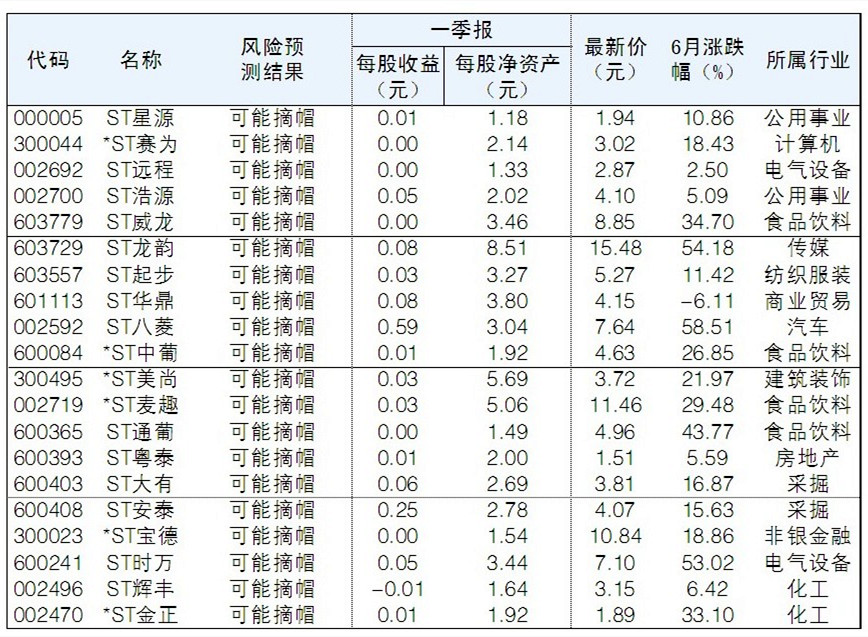 39家ST公司存在摘帽可能