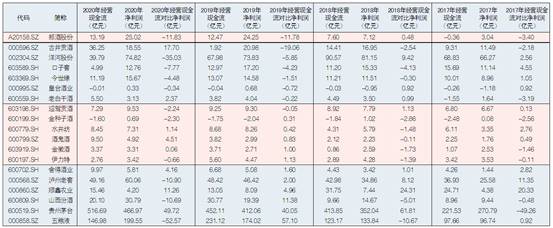 郎酒股份與A股白酒企業(yè)經(jīng)營現(xiàn)金流一覽
