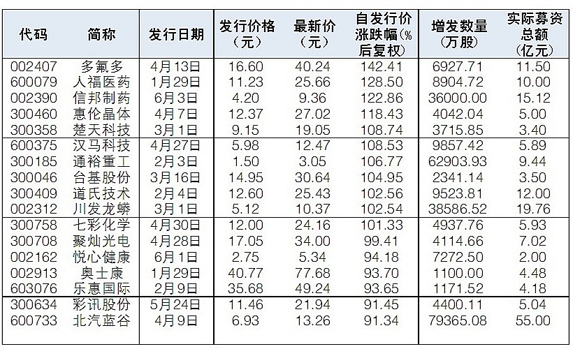 35股實施定向增發后股價上漲超90%