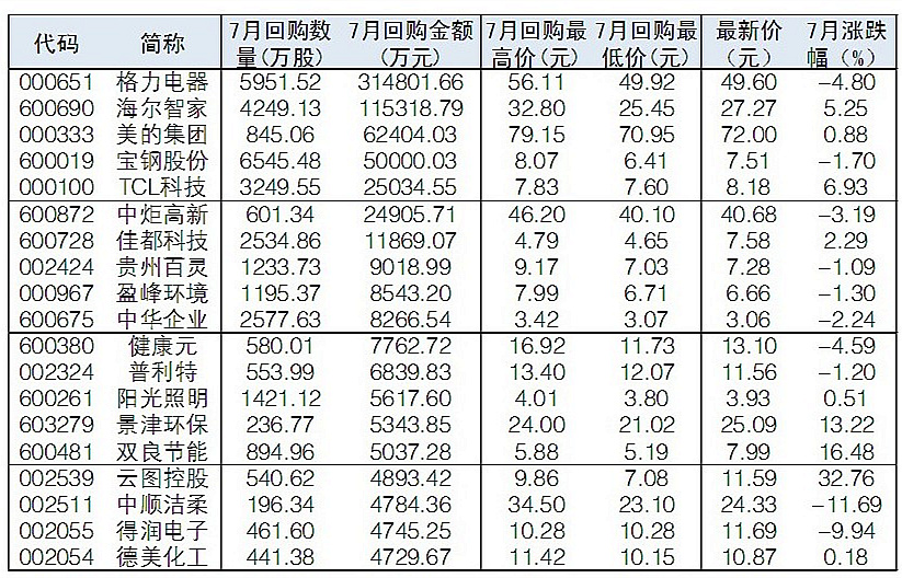 根據Wind統計,7月以來,已有142家公司實施了股票回購計劃。其中,有38家公司實施回購金額超過了2000萬元。從二級市場來看,云圖控股、韻達股份、雙良節能、南極電商、傳化智聯、景津環保等漲幅居前。