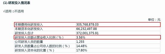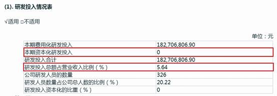 還有春風動力(603129),濤濤車業招股書稱其2019年研發費用率為5.61%,但春風動力年報明確披露2019年研發投入占比為5.64%,查閱可見春風動力該年研發費用18270.68萬元,無資本化研發支出,當年營收324233.16萬元,計算后得出研發費用率為5.64%(見圖五)。春風動力年報披露2018年、2020年的研發投入占比與公司招股書中研發費用率一致。