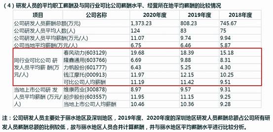 春風動力(603129)也一樣。濤濤車業招股書稱其2018-2020年研發人員平均薪酬分別為15.18萬元、18.39萬元、19.68萬元。