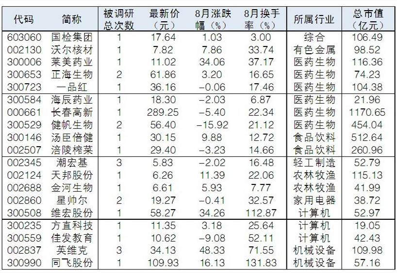 8月機構調研集中關注醫藥生物、機械設備