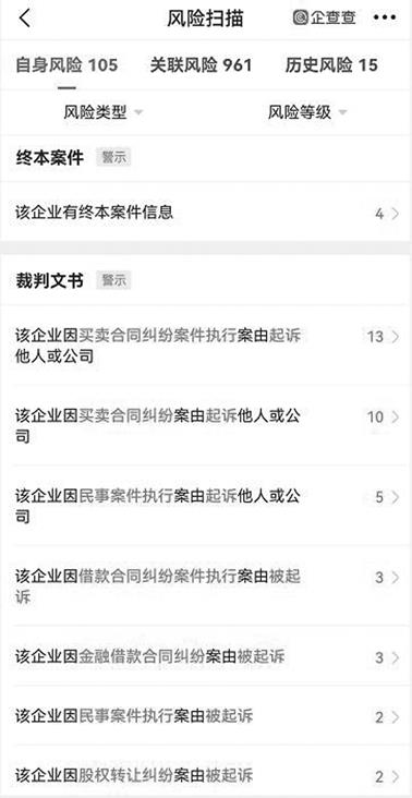 圖三:企查查關(guān)于濤濤集團(tuán)歷史風(fēng)險(xiǎn)截圖