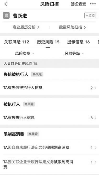 圖四:企查查關(guān)于曹躍進(jìn)歷史風(fēng)險(xiǎn)截圖