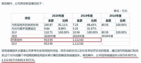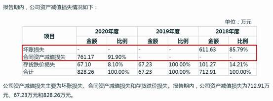 朗斯家居資產減值和信用減值損失上,2018-2020年分別為712.91萬元、1180.06萬元、1741.82萬元,直接吞噬了同期相應金額利潤(見圖一)。而具體來看,2020年,公司合同資產減值損失為761.17萬元,壞賬損失為913.55萬元;2019年,壞賬損失1112.82萬元;2018年,壞賬損失611.63萬元(見圖二、圖三)。