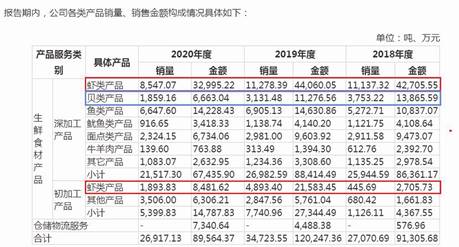 亞洲漁港曾于2018年底和2019年上半年設立子公司海燕號和海鷹號,拓展進口蝦類以及鮑魚初加工產品,以保證深加工產品供應的穩定性與拓展初加工業務,其中,進口蝦類供貨源主要為南美白蝦。發展數年后,亞洲漁港初加工業務已有一定分量,2018-2020年初加工產品占總營收比重分別為4.78%、22.74%、16.51%,其中蝦類產品是核心。