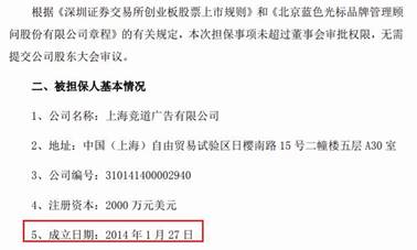圖五:藍色光標2015年12月公告為上海竟道提供擔保的截圖