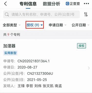 此外,通過企查查查詢顯示,截至2021年11月12日,北京秒新及北京彩云歸獲得授權的國家專利共24項(見圖六、圖七),其中三項為今年8月31日或10月22日授權,全部為實用新型或外觀設計。此外,北京秒新及北京彩云歸處于實質審查狀態(tài)的申請中專利數(shù)量13項,除了2項申請日在2020年之后,其余申請日均在2017年。北京秒新及北京彩云歸已授權專利加上處于實質審查狀態(tài)的申請中專利共37項。