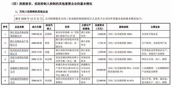 這一點在大洋世家招股書中所披露的“截至2020年12月31日萬向三農控制的其他企業的基本情況”的列表也可以得到印證,而且招股書赫然顯示:當時浙江北極品的法人代表仍是曾波(見圖四)。
