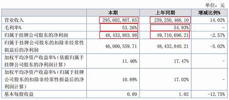 而東星醫(yī)療2018年、2019年年報(bào)顯示,凈利潤分別為4971.06萬元、4843.38萬元(見圖二),與招股書披露的同期數(shù)據(jù)分別相差70多萬元、100多萬元。但對于2018年、2019年?duì)I業(yè)收入及毛利率,招股書與此前披露的年報(bào)數(shù)據(jù)均一致。