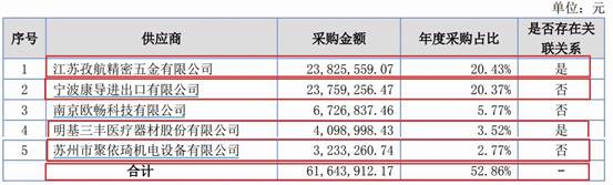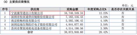 圖七:東星醫(yī)療招股書前五大供應(yīng)商