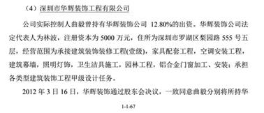 同樣,本報之前也曾報道,持股華輝裝飾的曲毅還長期擔任其董事——工商變更登記信息顯示,2003年12月29日,曲毅成為華輝裝飾董事,直到2012年7月3日,成員變更登記信息才顯示曲毅不再擔任其董事。