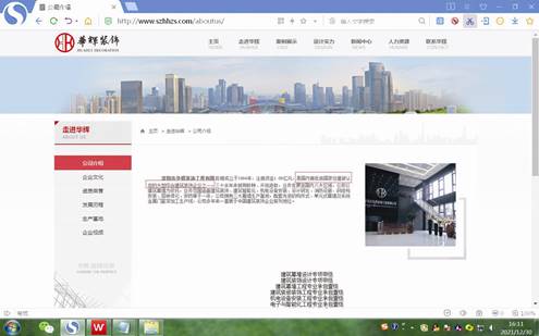 圖三:華輝裝飾官網企業介紹截圖