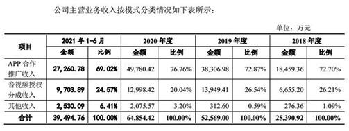 而寶寶巴士招股書披露的業務收入分類情況顯示,2018-2020年,公司APP合作推廣收入分別為1.85億元、3.83億元、4.98億元,分別占公司主營業務收入比例為72.70%、72.87%、76.76%,為公司主營收入的絕對“大頭”(見圖二)。