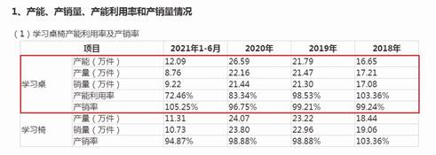圖一:護(hù)童科技招股書學(xué)習(xí)桌椅產(chǎn)能產(chǎn)銷情況截圖