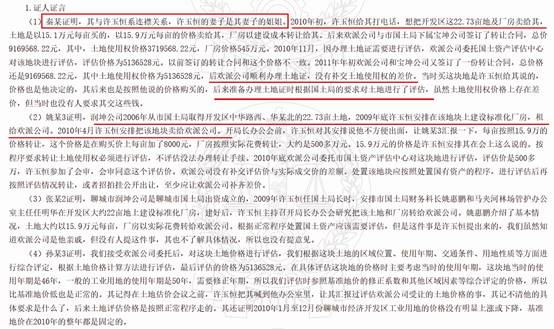 值得一提的是,歡派公司成立時間為2009年10月,結合上述證詞可以看出,歡派公司注冊時間、許玉恒安排建設標準化廠房時間在同一年,頗為巧合,歡派公司受讓土地的合規性令人關注。