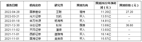 國泰君安認為,在行業景氣度較低的狀態下,公司一季度業績凈利潤實現了同比持平、環比大幅增長的表現,下半年在景氣度恢復的情況下,公司的業績增長值得期待。按照最新股本計算,國泰君安預計公司2022-2024年EPS分別為0.97元、1.36元、1.68元,由于股本擴張帶來EPS下降,下調公司目標價至27.20元/股(-4.05元),對應2023年20倍PE,維持“增持”評級。