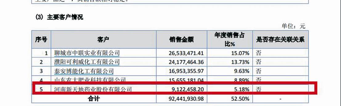 新天地同時也是恒森化工的供應商,向其銷售硫酸銨、草酸等副產品,2020-2021年,對其銷售金額分別為272.93萬元,203.62萬元。