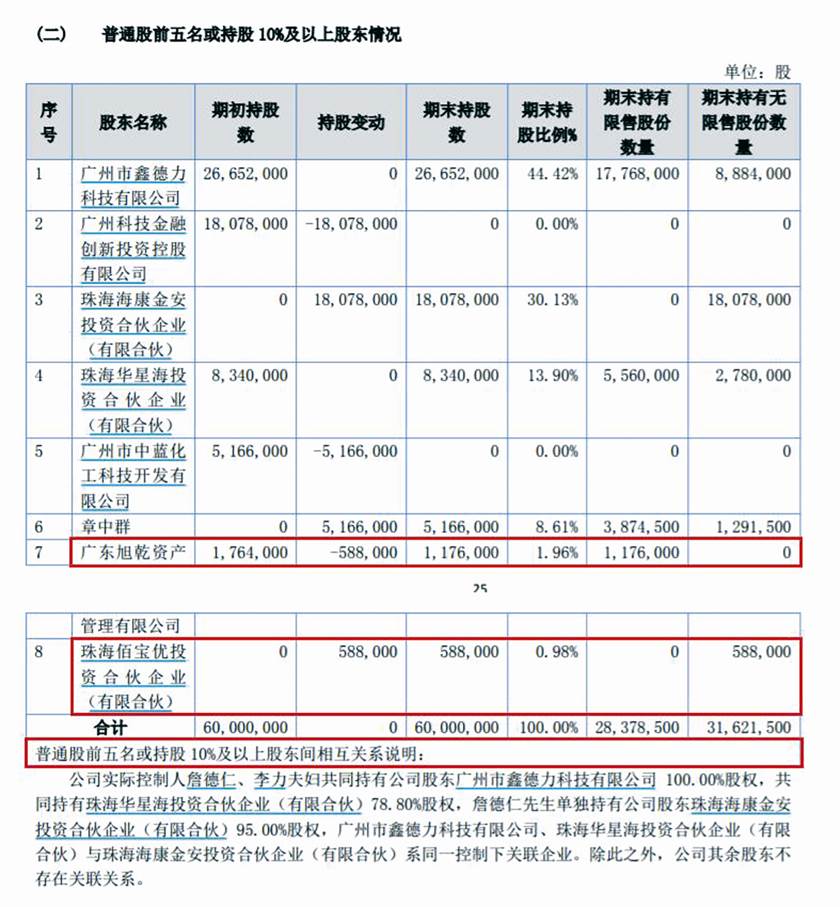 而一家名為佰寶優即彼時全名為珠海佰寶優投資合伙企業(有限合伙)的企業成為名單中新晉股東,持股數量恰巧與信陽旭雅減持的58.80萬股相同,持股比例0.98%(見圖一)。