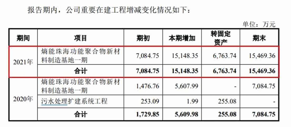 值得注意的是,公司熵能珠海基地兩期項目投資總金額3.90億元,與環評報告書顯示的該項目投資金額存在較大差異。
