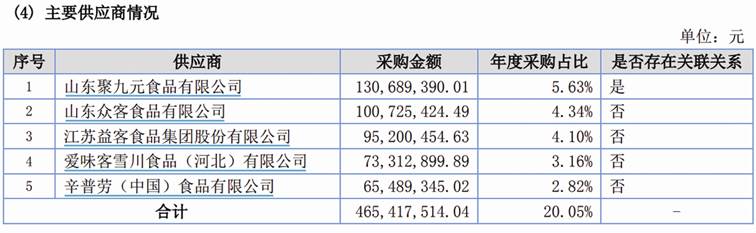 圖四:華士食品2018年年報主要供應商情況