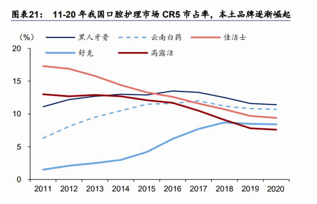 圖五:我國口腔護理市場市占率前五(華泰證券研報)