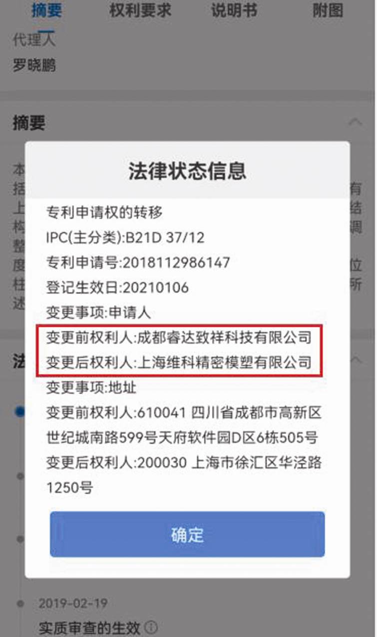 而第3個至第5個發明專利均為公司從自然人或其它企業處受讓取得,第3個的專利權轉移變更日為2021年1月15日(見圖二),第4個、第5個都是2021年1月19日發生專利權轉移變更(見圖三、圖四)。