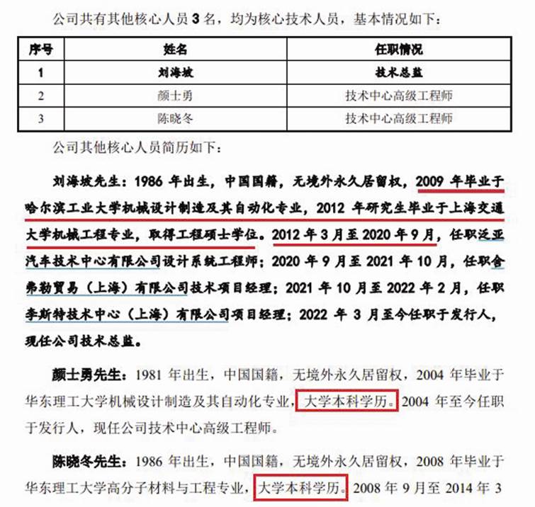 招股書顯示,截至2021年12月31日,公司核心技術人員為李江波、梅維佳、顏士勇和陳曉冬。2022年6月,劉海坡擔任公司的技術總監,核心技術人員再添一人,李江波、梅維佳于2021年5月6日起又擔任公司副總經理。