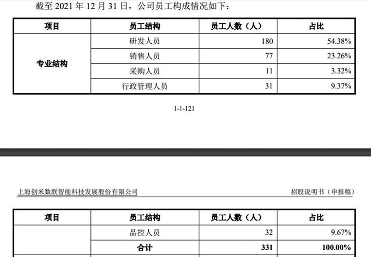 圖四:創(chuàng)米數(shù)聯(lián)招股書員工構(gòu)成截圖