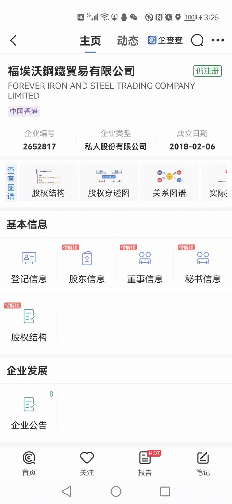 通過企查查查詢的信息顯示,有三家境內外注冊企業與之近似,一家叫福埃沃鋼鐵貿易有限公司,是注冊地為香港的一家私人股份有限公司,企業編號為2652817。不過其成立日期為2018年2月6日(見圖一),與公司招股書披露的2004年即引入該外部投資者的時間明顯“對不上”。