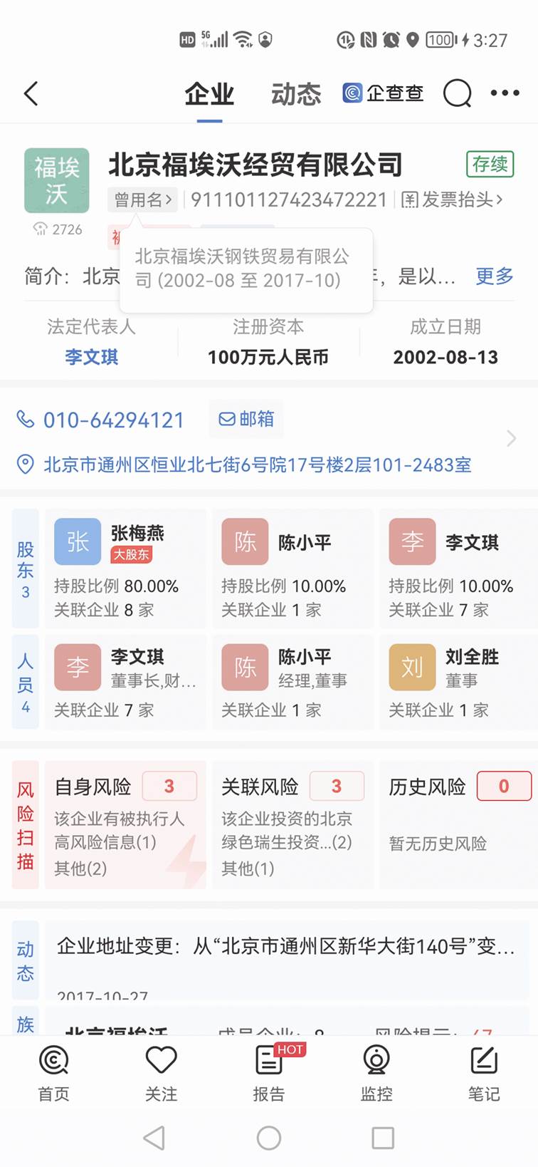 圖二:北京福埃沃經貿有限公司企查查截圖