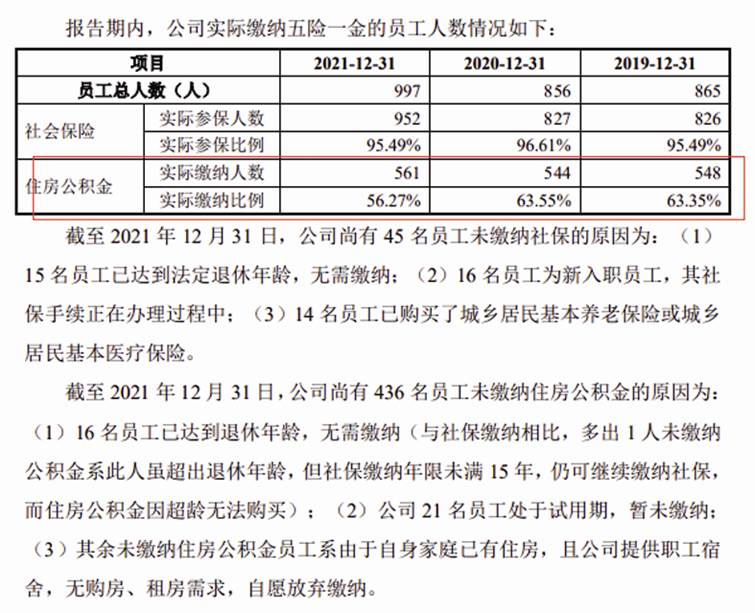 對于部分員工未繳納住房公積金的原因,三威新材表示:“其余未繳納住房公積金是已有住房,無購房、租房需求,自愿放棄。”
