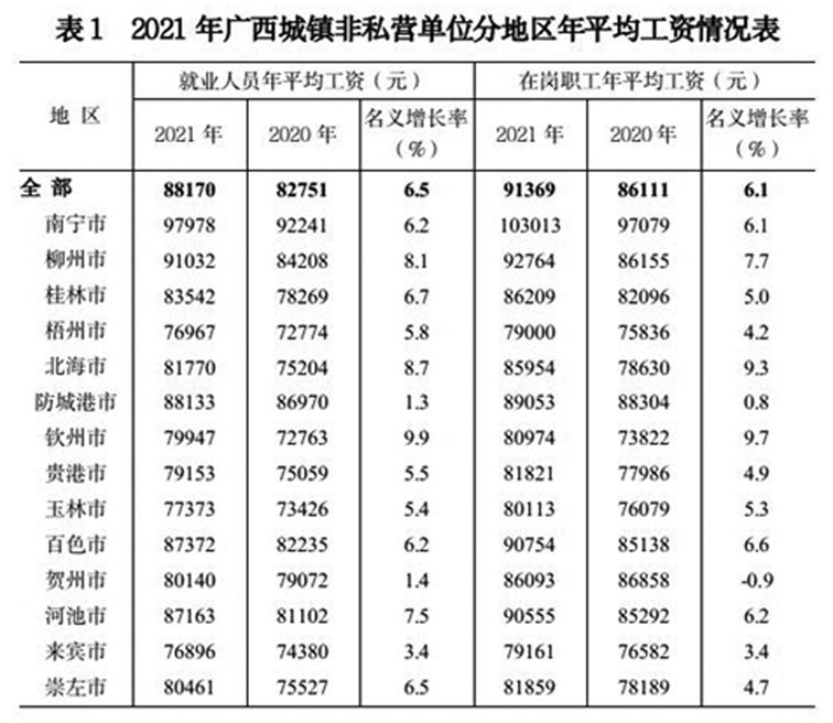 廣西統計局公布的2021年廣西城鎮非私營單位分地區年平均工資顯示,梧州地區相關單位就業人員年平均工資情況為7.70萬元(見圖四)。