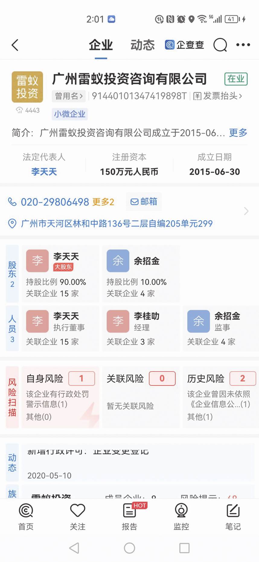圖一:廣州雷蟻投資股權(quán)情況截圖