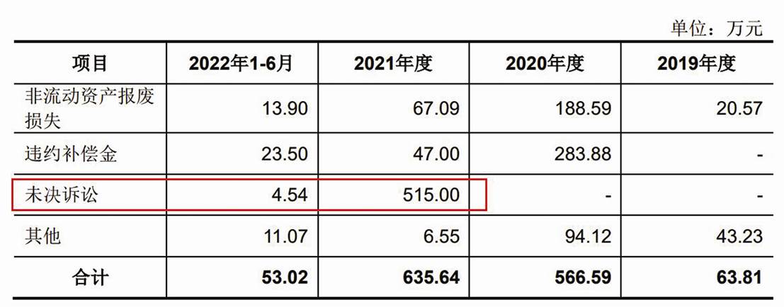 招股書數據顯示,悍高集團2021年未決訴訟涉及515萬元(見圖二),截至招股書簽署日,悍高集團存在未決訴訟事項共兩起。
