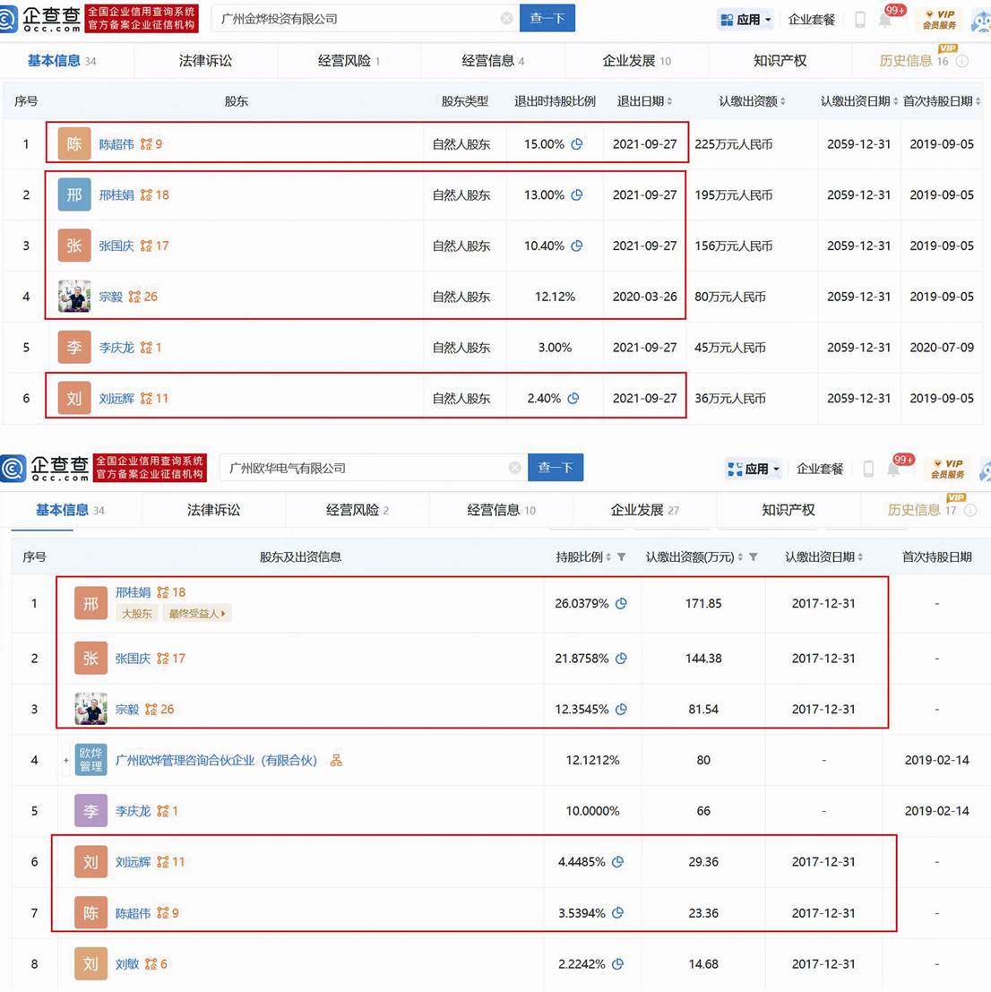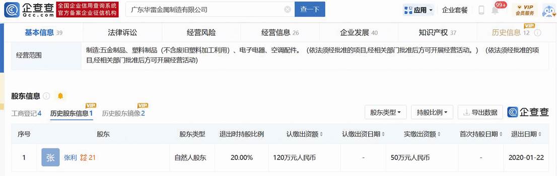 圖二:廣東華雷金屬制造有限公司歷史股東信息