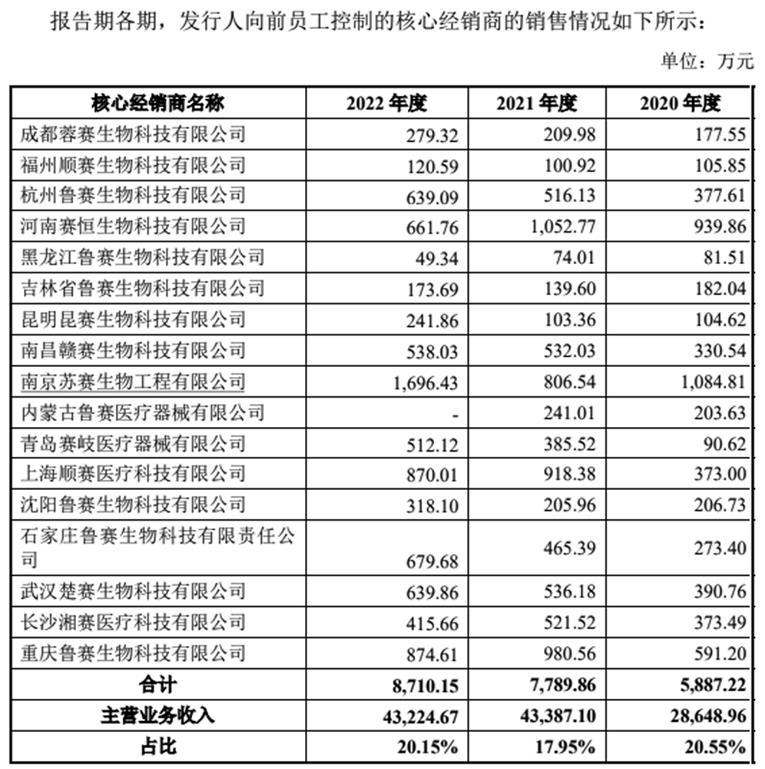 對于前員工控制的經(jīng)銷商起源,賽克賽斯稱:“公司成立初期,主要從事藥品銷售及醫(yī)療器械研發(fā)、生產(chǎn)和銷售業(yè)務(wù),隨著發(fā)行人逐步專注于醫(yī)療器械的研發(fā)和生產(chǎn),為最大程度激發(fā)員工的銷售積極性,快速提高醫(yī)療器械業(yè)務(wù)規(guī)模和市場占有率,鼓勵(lì)部分業(yè)績較好的區(qū)域銷售經(jīng)理于2013年起逐步成立區(qū)域銷售公司。”