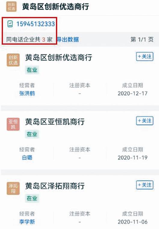 圖五:與黃島區創新優選商行同電話企業企查查截圖