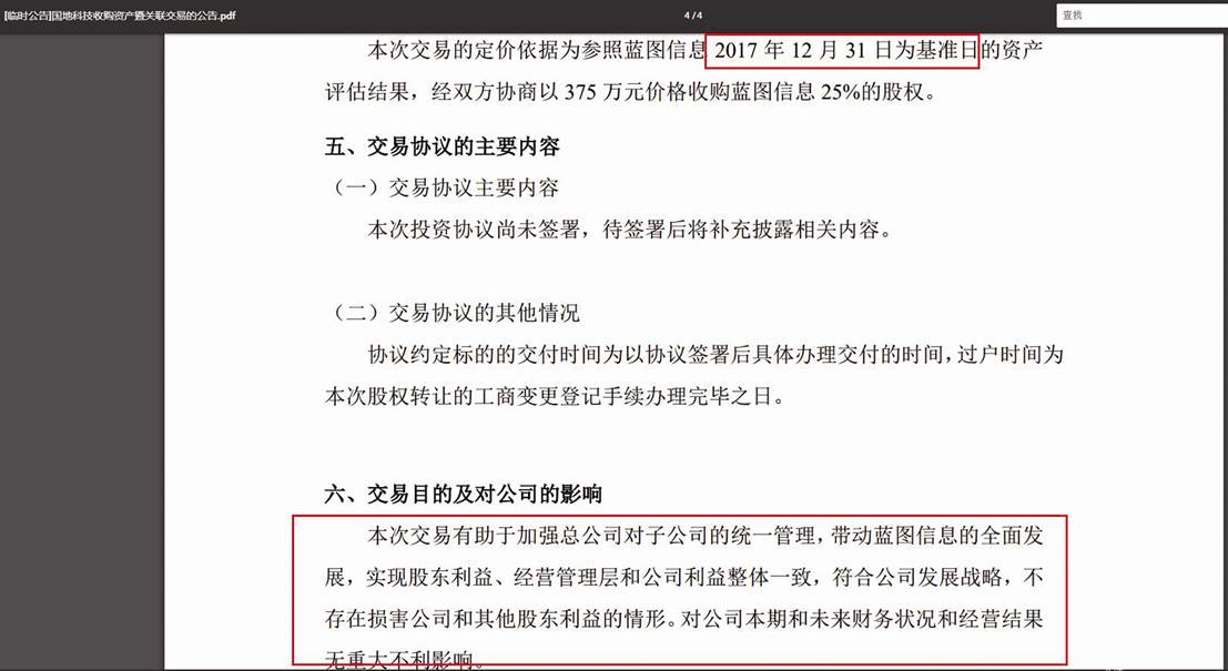 圖三:國地科技收購資產(chǎn)暨關(guān)聯(lián)交易的公告