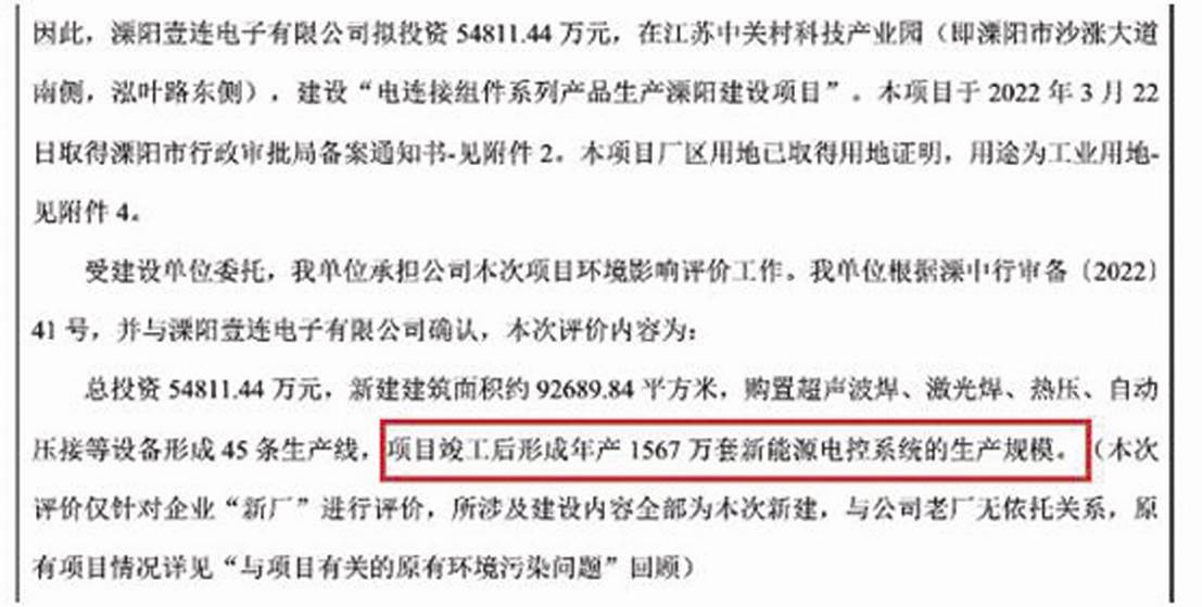 譬如最核心的電連接組件系列產(chǎn)品生產(chǎn)溧陽建設(shè)項(xiàng)目,內(nèi)容僅為: