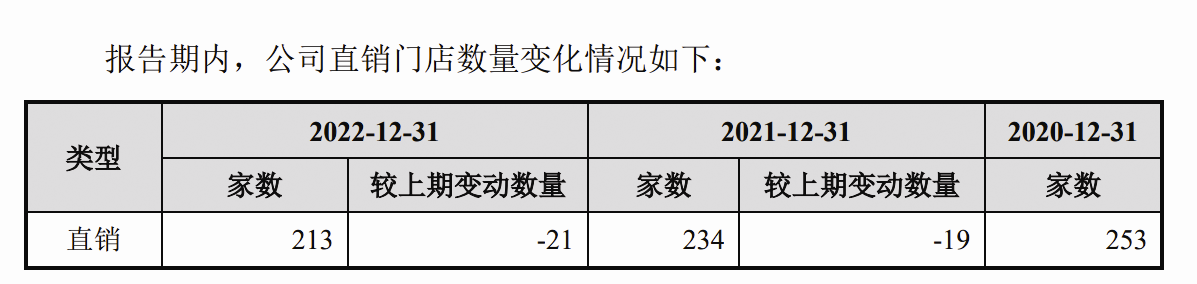 而報告期內,公司直營門店的數量分別為253家、234家、213家,短短兩年時間內,直營門店減少了40家(見圖二),閉店率接近兩成。
