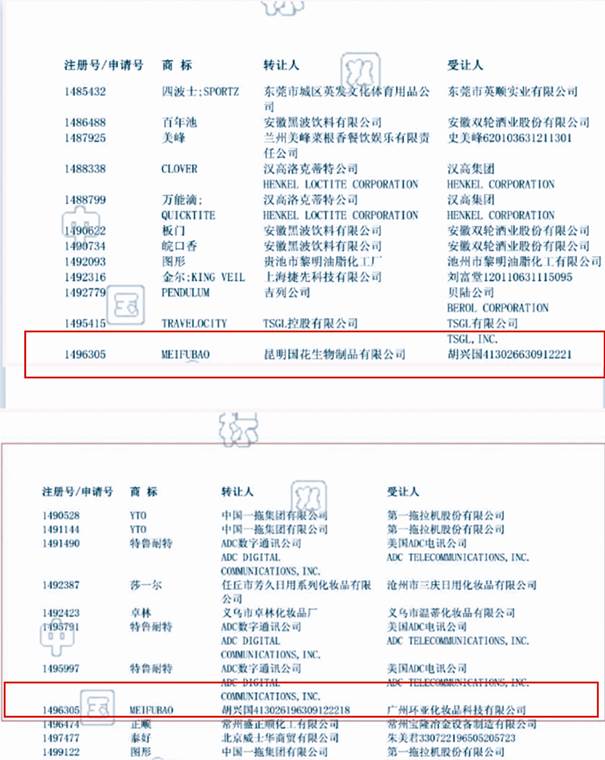 圖二:昆明國(guó)花生物MEIFUBO商標(biāo)轉(zhuǎn)讓情況截圖