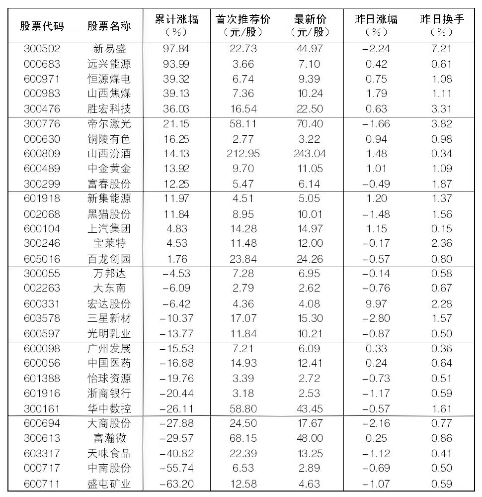 “大眾30”成份股每日報告