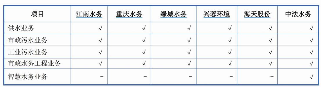 圖五:從業(yè)務(wù)類別來(lái)看,中法水務(wù)與同行業(yè)主板上市公司對(duì)比情況