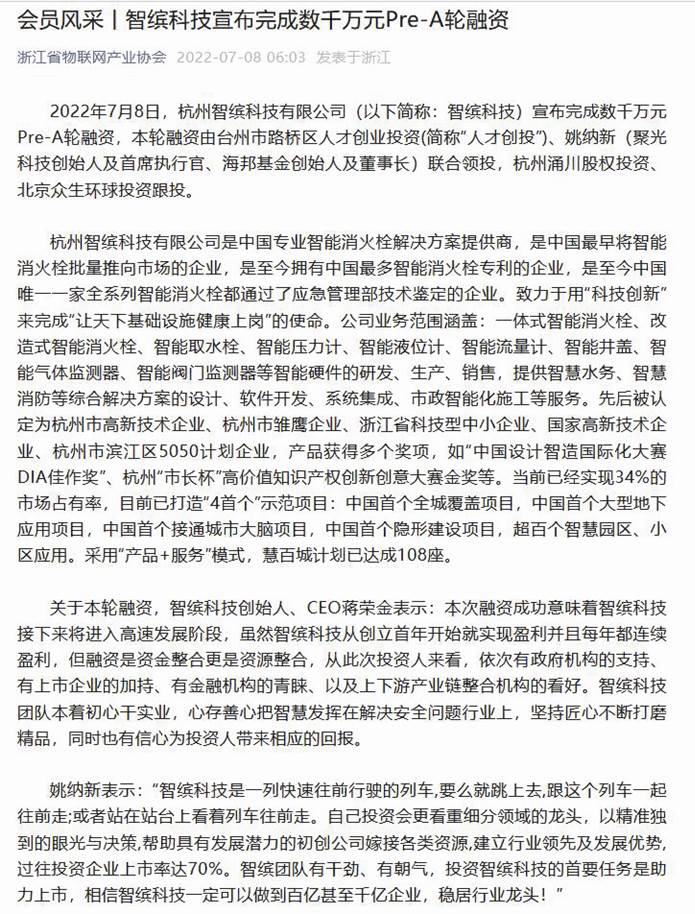 圖二:2022年7月《智繽科技宣布完成數(shù)千萬(wàn)元Pre-A輪融資》