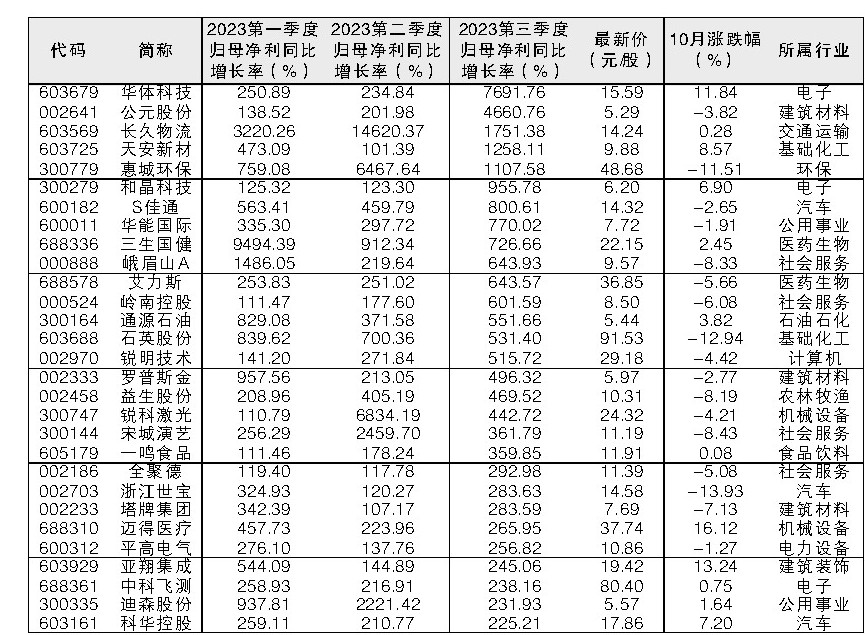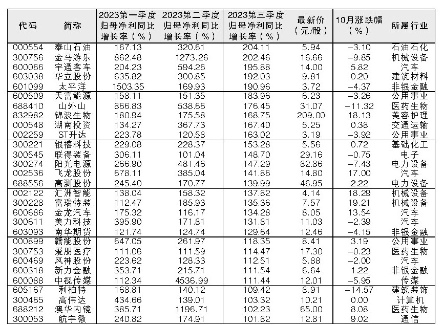 58股連續三季凈利同比增速超過100%